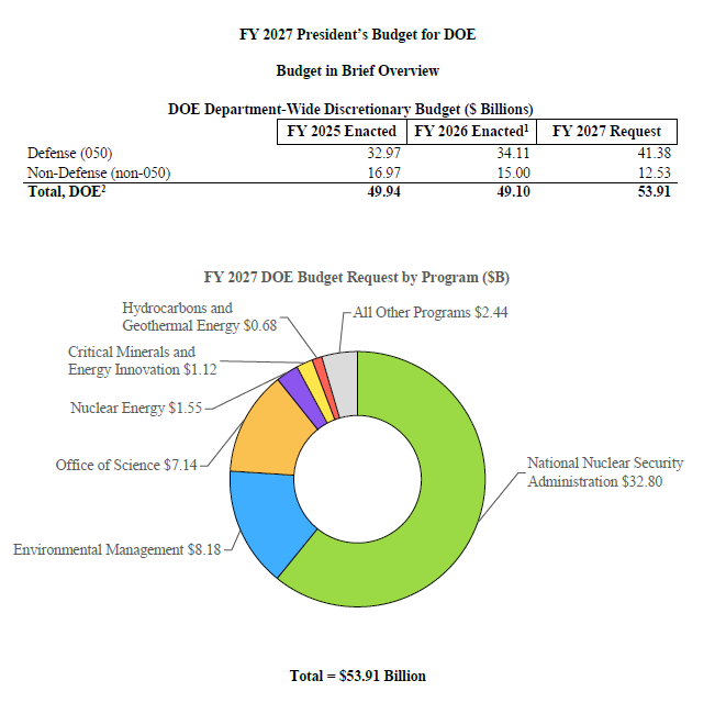 The annual DOE and NNSA Congressional Budget Requests are typically available on the scheduled release date by 1:00 pm EST at https://www.energy.gov/cfo/listings/budget-justification-supporting-documents
